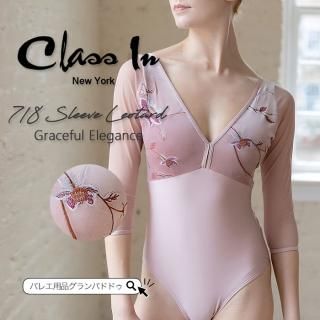 ClassIn(クラスイン)レース7分袖 花柄刺繍レオタード(ジュニア/大人レディースサイズ/バレエレオタード)