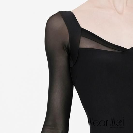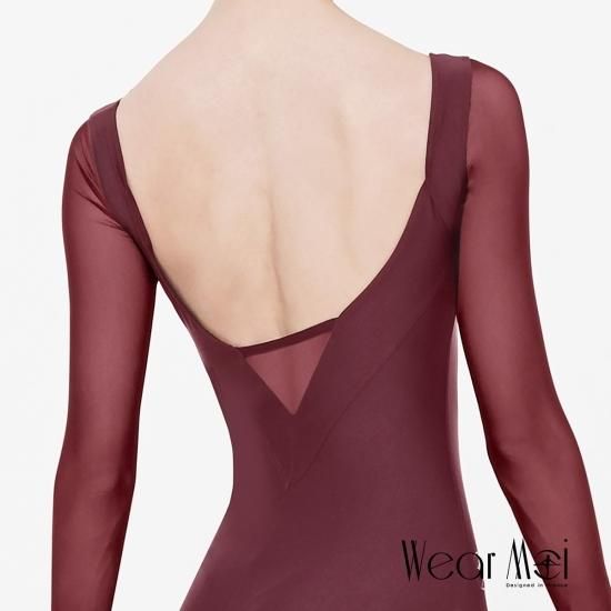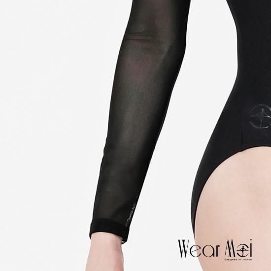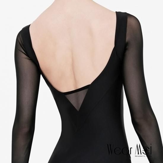 透け感のあるシースルー生地を取り入れたデザインが大人っぽさを演出。シンプルでレッスンに着やすい『LAVANDE』 長袖レオタード、吸水性・速乾性に優れた丈夫なマイクロファイバー素材を採用しており、着心地にもこだわりました。襟ぐりと背中の美しいラインで程よく肌を見せ、スタイル良く着こなすことが可能。細部まで着心地とデザイン性を追求し、ストレッチ生地による抜群の動きやすさでパフォーマンスをサポートします。バレエスカートなどお好みのボトムスと合わせた着用により、さらにスタイリングの幅が広がる使い勝手抜群のアイテムです。