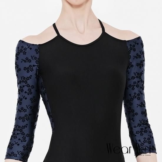 肩と背中のオープンデザインのシルエットが美しい「クルーネックレオタード」は、袖に小花柄型押しプリントを施し、エレガントさと可愛さたっぷりのレオタードです。セットアイテムの『DIONYSOS』スカートと是非合わせてみてください。素材は吸水性・速乾性に優れたマイクロファイバー素材を採用。汗によるベタ付き感が気になりにくいこだわりの仕立てにより、ストレス無く快適に着用いただくことが可能です。さらに背中の上部にはボタンが1つ付属し、スムーズな着脱をサポートします。抜群のストレッチ生地で快適な着心地を実現。ダイナミックな動きにも対応し、表現力をさらに広げます。