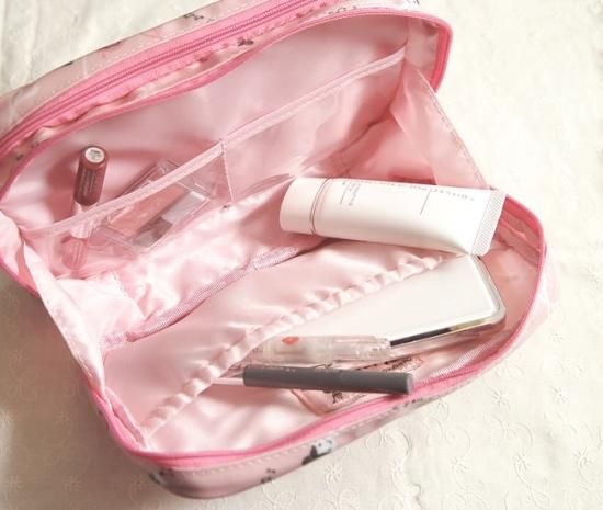 外側がPVCコーティングになっているので、水に濡れにくくお手入れもしやすいコスメポーチです。