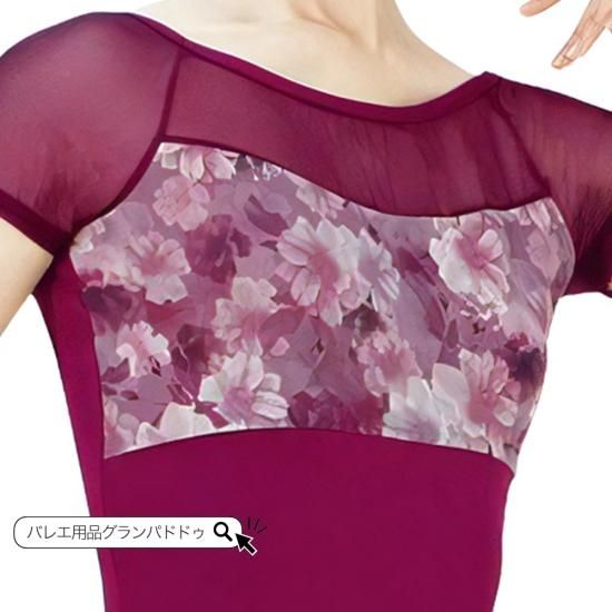 エルエトワ ローズ柄 フレンチ袖レオタード
