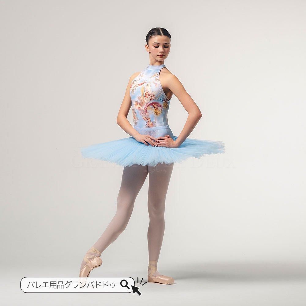 優雅でエレガントなデザインが魅力のグリシコ ブラックラベル ディヴィニティコレクションのハイネックレオタード。天使のモチーフが描かれたデザインが特徴で、バレエの練習やパフォーマンスに華やかさを添えます。