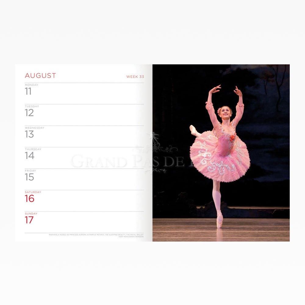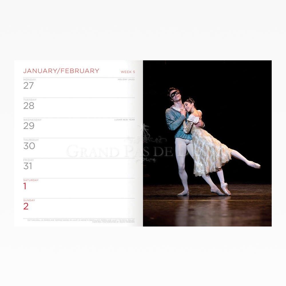ロイヤル・バレエの公演を捉えた30枚の美しいカラー写真と、ゆとりのある週間見開きレイアウトを備えています。