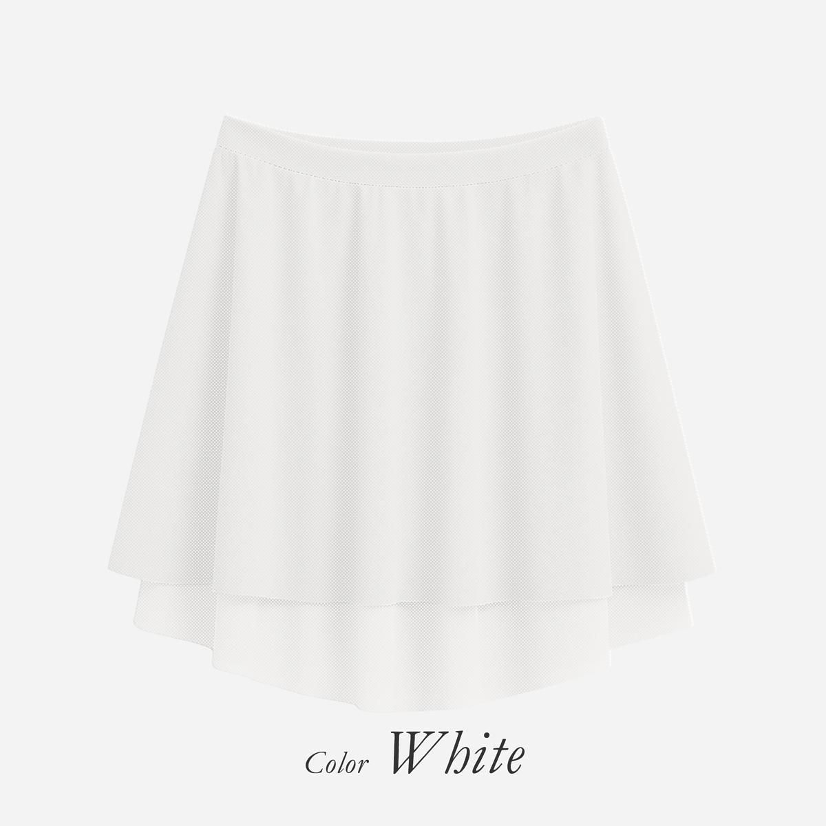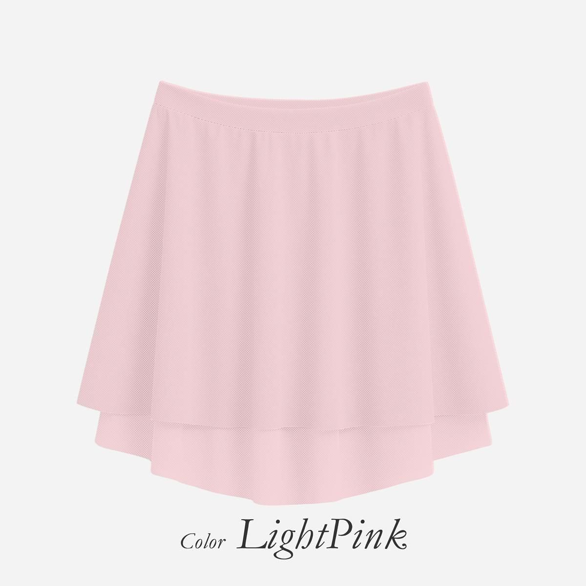 動くたびにふわりと広がるシルエットは、シンプルながら脚のラインを美しく引き立て、毎日のレッスンに使いやすいデザインです。 ウエスト部分は同じ素材のメッシュストレッチの履き込み仕様で、身体にしなやかにフィット。ウエスト周りを締めつけず、ストレスフリーな着心地を実現しました。 ・柔らかく程よいハリのあるメッシュ素材 ・履き込みタイプのウエストで着脱もスムーズ ・伸縮性のあるストレッチウエストがフィット感をサポート ・ヒップラインから自然に広がる美しいフレアシルエット ・シンプルだからこそ、どんなトップスとも相性◎ ■おすすめ活用シーン■ グラン・パ・ド・ドゥのリハーサルやヴァリエーションの練習時、ラインを見せたい基礎レッスン、舞台リハーサルなどに最適。 メッシュの透け感がレオタードのデザインも活かしつつ、動きを華やかに見せてくれるので、大人バレエの方にもおすすめです。