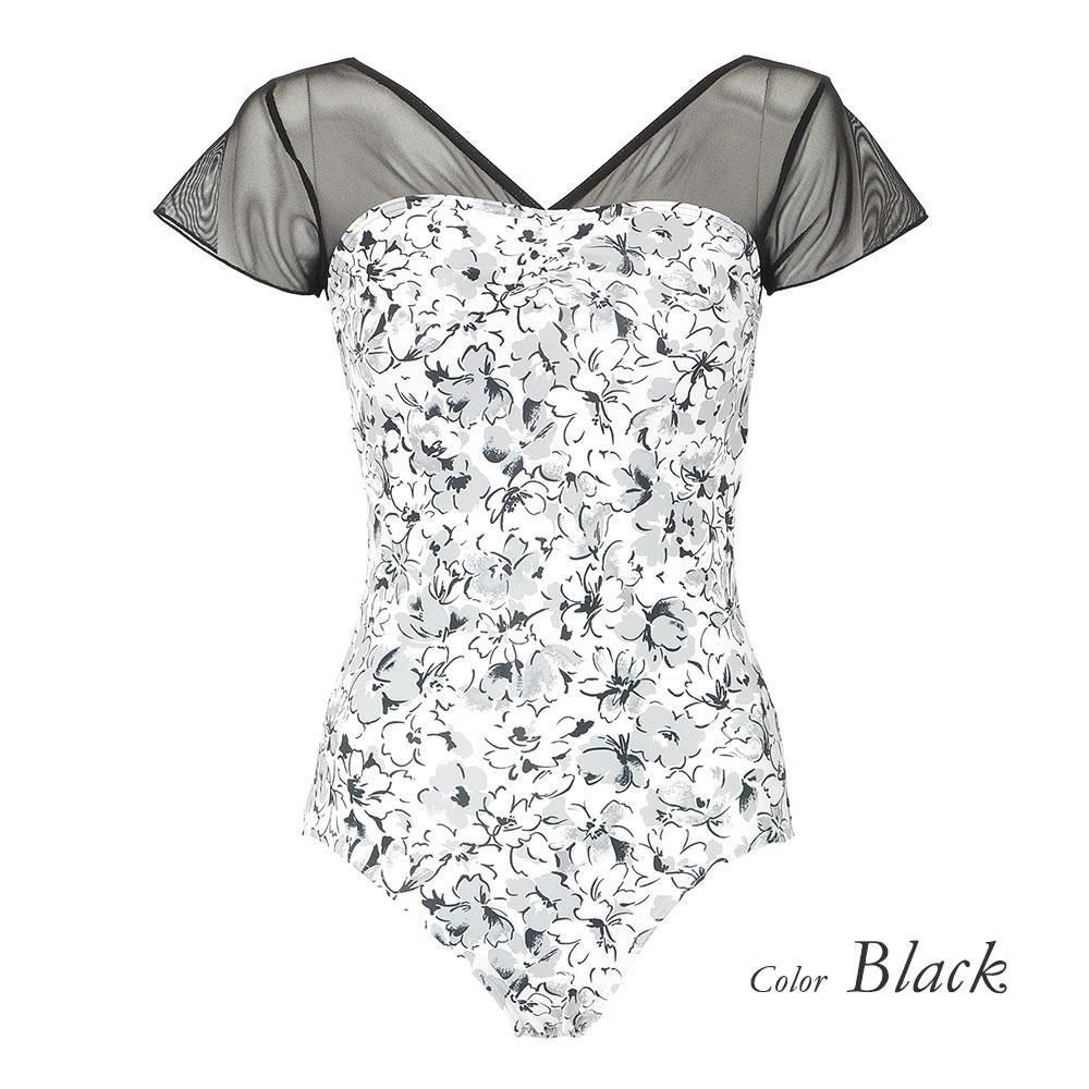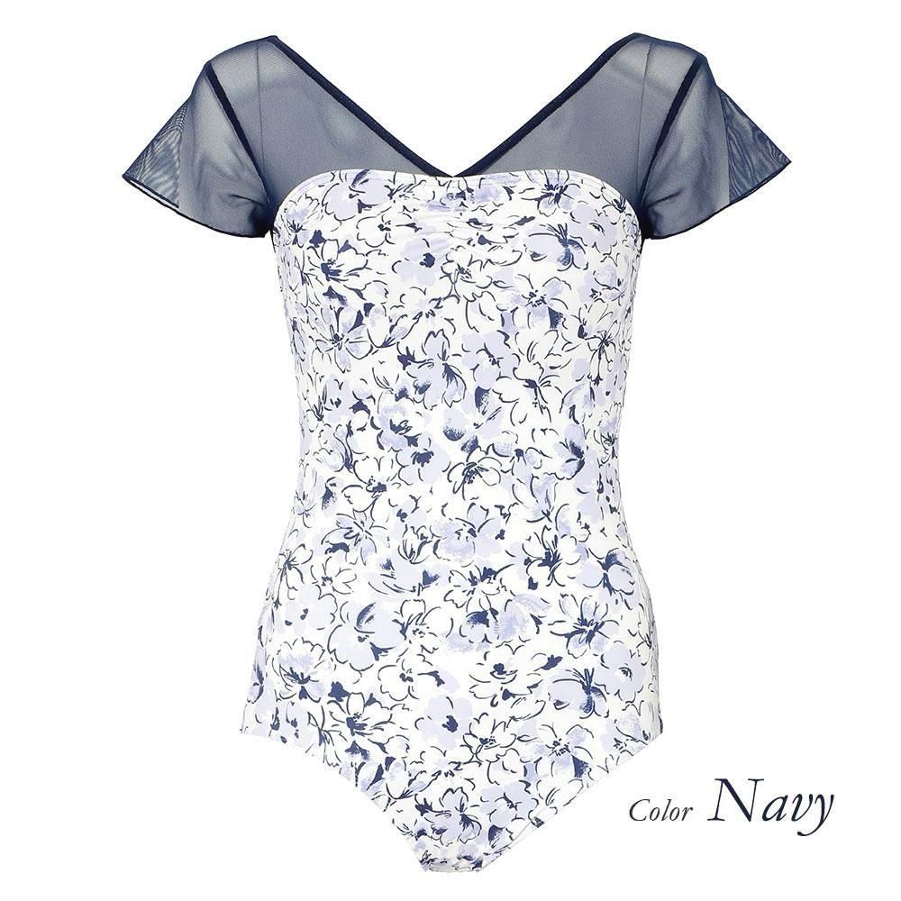 しっとり上品なフラワープリントに、肩先をふわりと覆うシアーな2分袖。香澄 Kasumi 2分袖レオタード